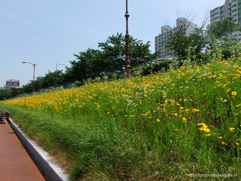 건너편에 금계국 잔딱 심어놔서 누리끼리 합니다.
