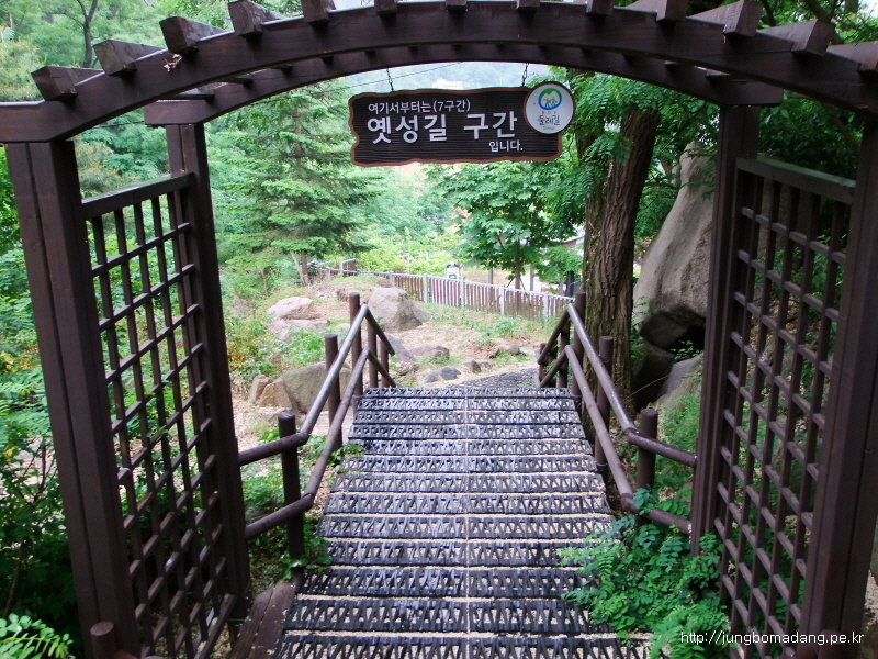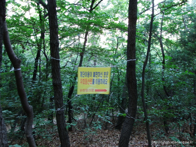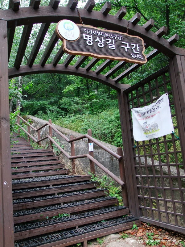 우측에 이런 계단길을 올라야합니다. 방금 흙길을 가게 되면 역방향으로 진행이 되더군요. 여기도 안내 표시가 좀 보강되어야 될 듯!! 여기서 몇바꾸를 돌았는지....