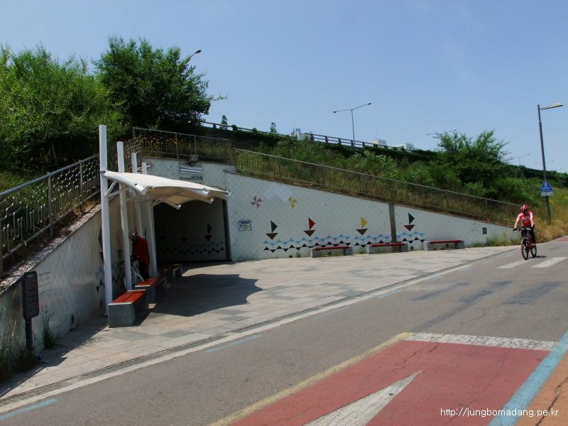14:11 그렇게 신나게 가양대교를 건너고... 아니 완전히 건너면 안되는 데, 표식을 놓쳐서, 고민 때리다가 갈림길로 되돌아가기로... 저 앞에 네모진 엘리베이터까지 가야합니다. 젠장!