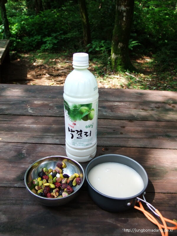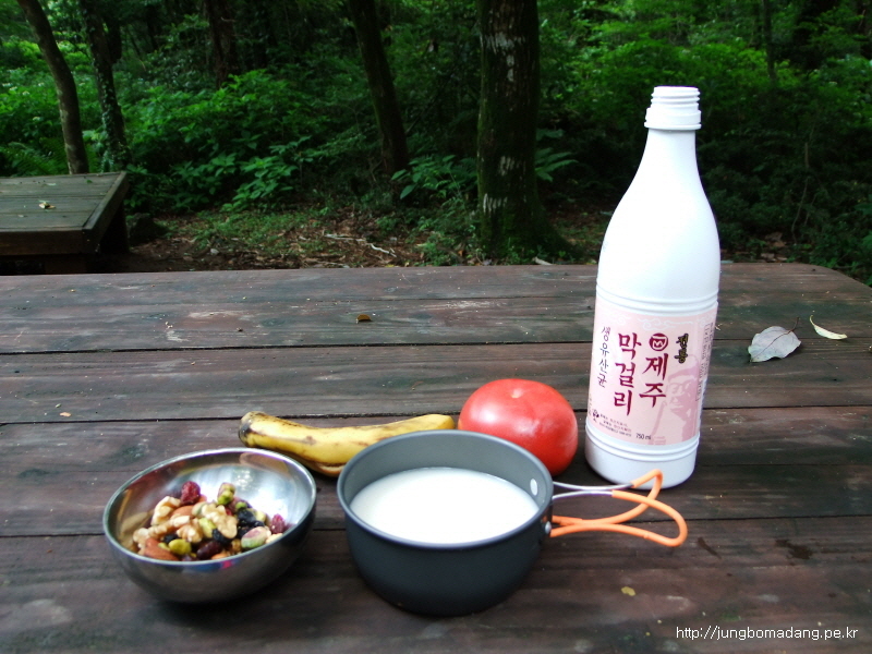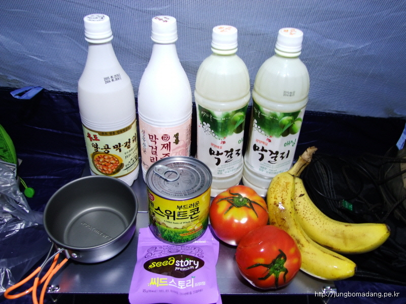 여기서 씨드스토리 3봉과 우도막걸리 1병, 매실막걸리 1병, 스위트콘, 토마토, 바나나 각 1개씩 먹습니다. 그리곤 자연스레 취침....