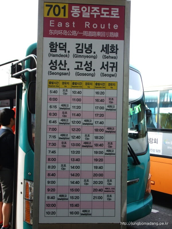요건 성산항 가기위해 타는 버스... 우도 들어갈땐 이 버스가 유리합니다. 동일주타고 성산에 내리면 좀 걸어야 하니까요.
