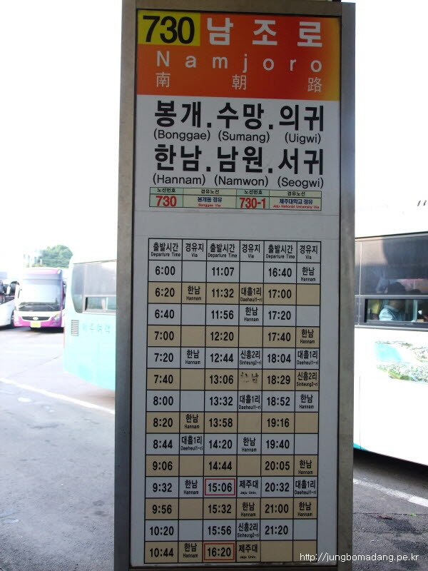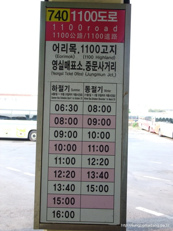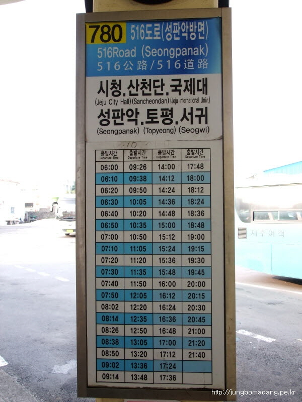요기는 한라산 정상을 가기위해 성판악까지 데려다주는 버스죠. 버스시간도 꽤 자주있습니다.