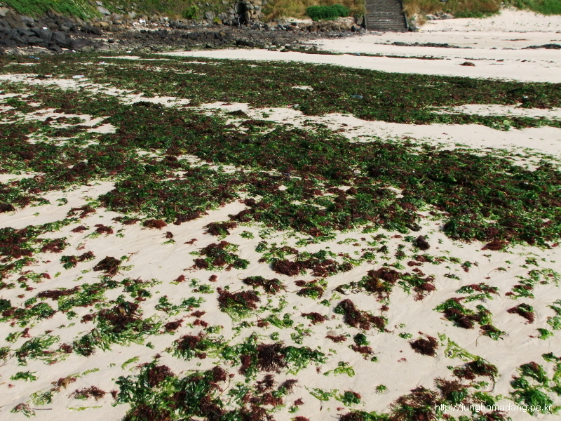 물에 웬 안주거리들이 이렇게 떠밀려오죠? 미역이며 등등