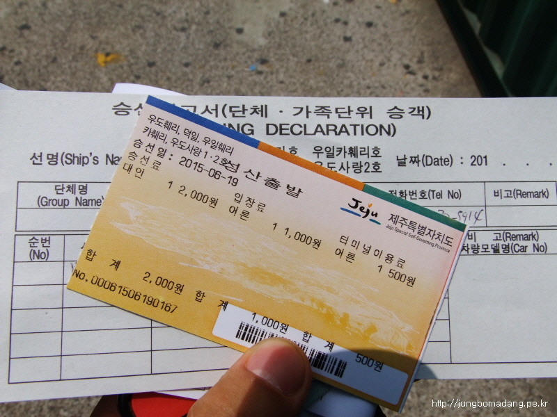 성산~우도 선박 : 3500원