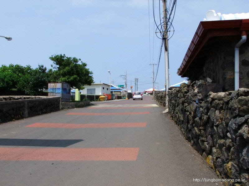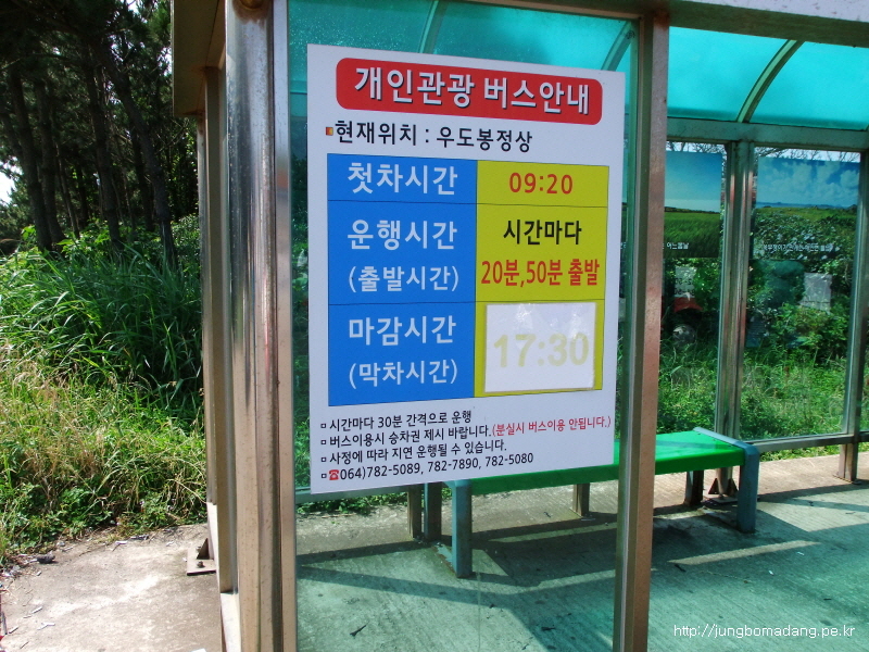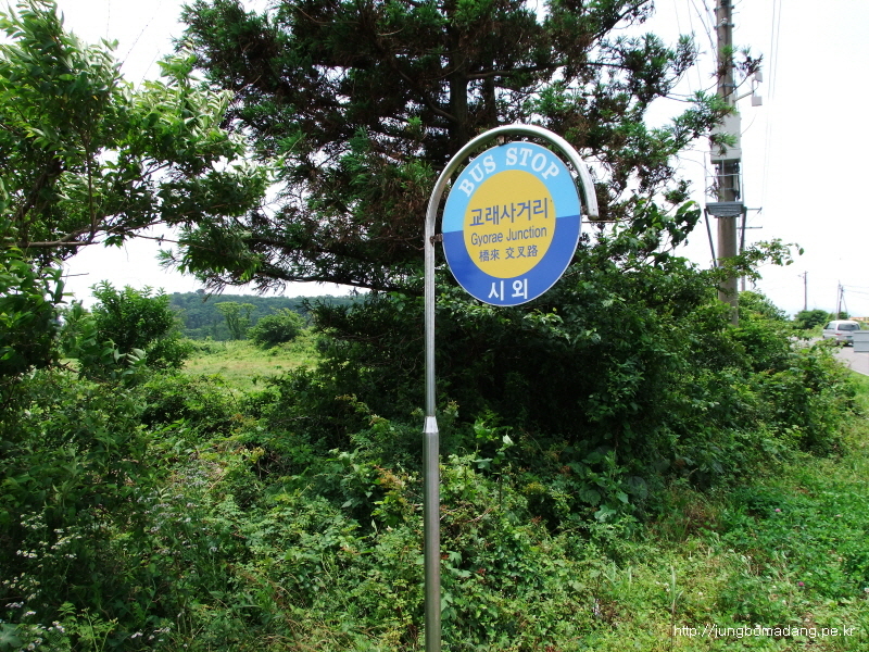건너편에 버스정류장이 보이네요. 버스도 뜸하게 오고... 우도로 가기위해 교래사거리까지 걸어 이동하고, 거기서 버스로 성산까지 이동할껍니다.
