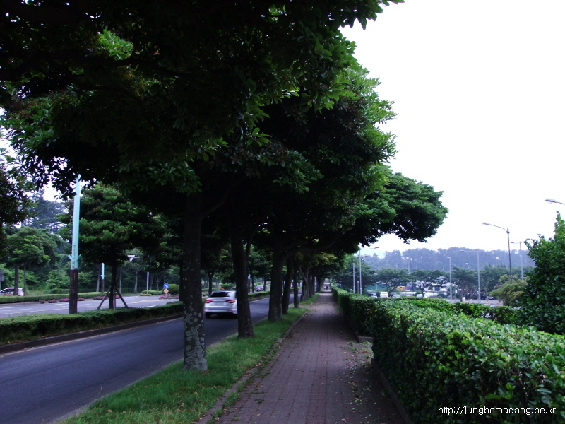 건너편에 버스정류장이 보이네요. 버스도 뜸하게 오고... 우도로 가기위해 교래사거리까지 걸어 이동하고, 거기서 버스로 성산까지 이동할껍니다.