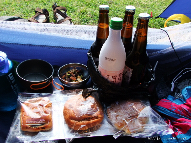 여기서 씨드스토리 3봉과 우도막걸리 1병, 매실막걸리 1병, 스위트콘, 토마토, 바나나 각 1개씩 먹습니다. 그리곤 자연스레 취침....