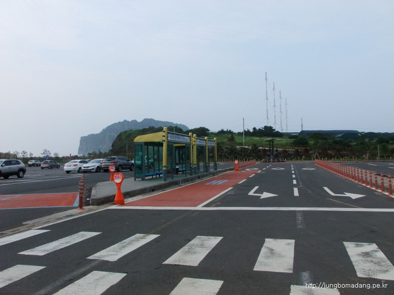 07:18 성산항에 도착하고, 바로앞에 있는 버스정류장으로 향합니다. 여기서 제주터미널 가는 버스 탈거구요.