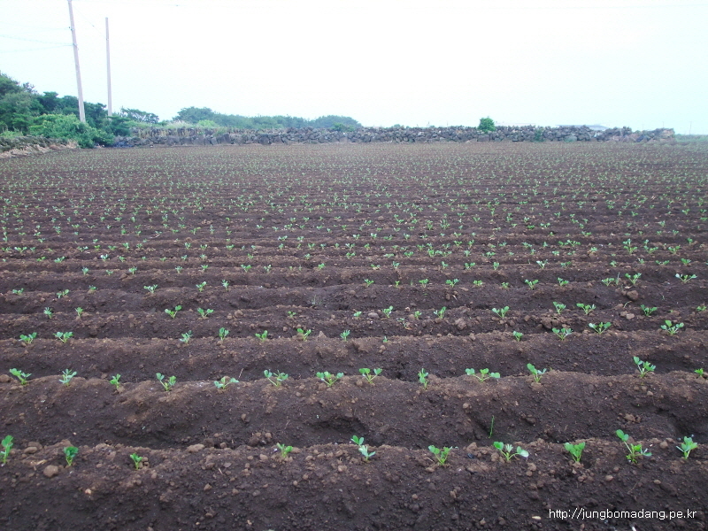 우도에 유명한 땅콩 밭에 새싹이 무럭 무럭 자라고 있네요.
