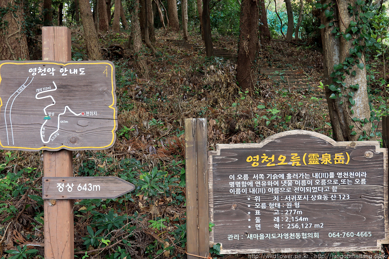 영천악 둘레길을 걷다 보니 한라산 정상도 보이네요. 하지만 구름에 가려서 오늘은 패스~.
