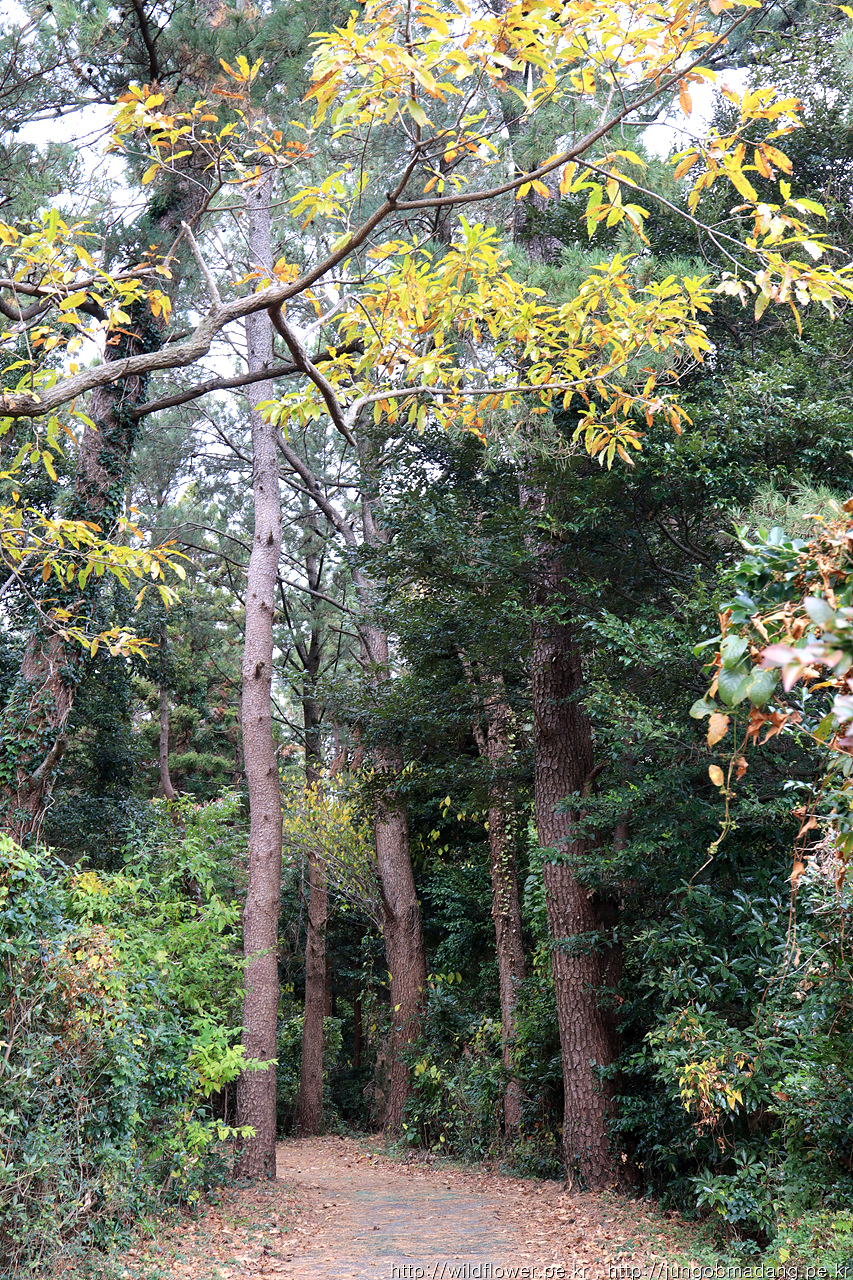 전시관 온실까지 나오면 외부에 구실잣밤나무가 심어진 산책로가 있습니다. 산책로 거리가 그리 길지는 않습니다.