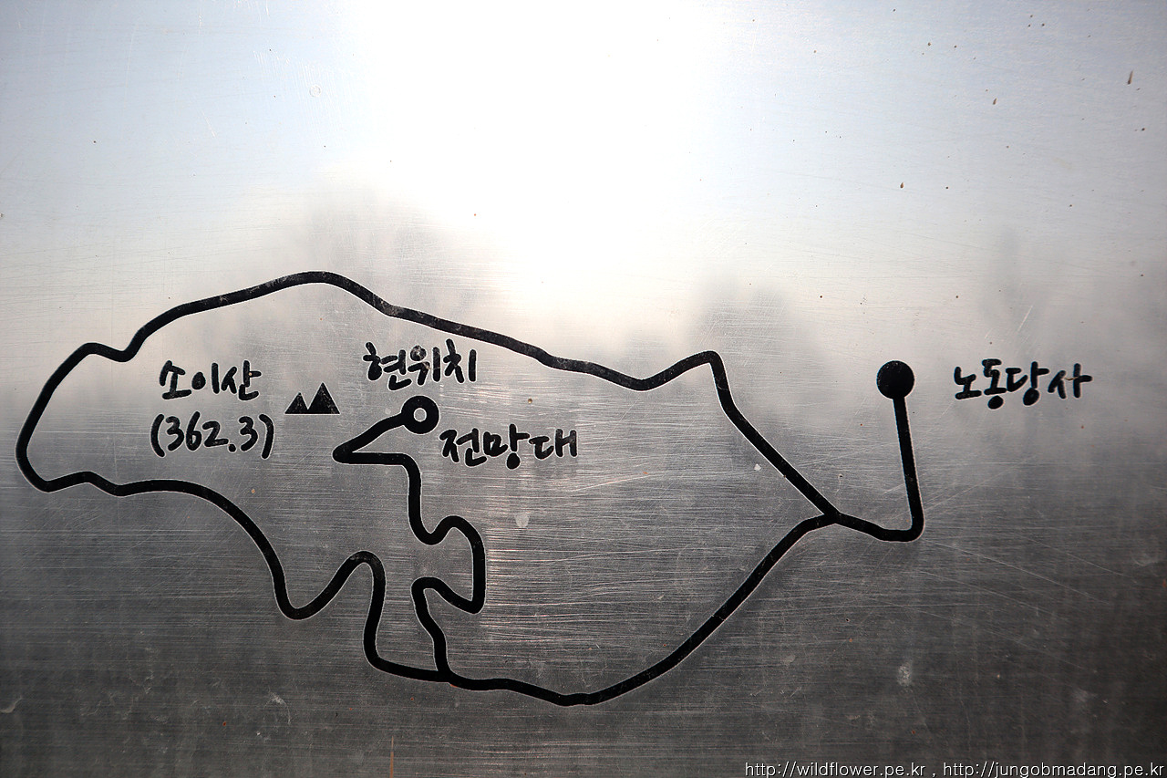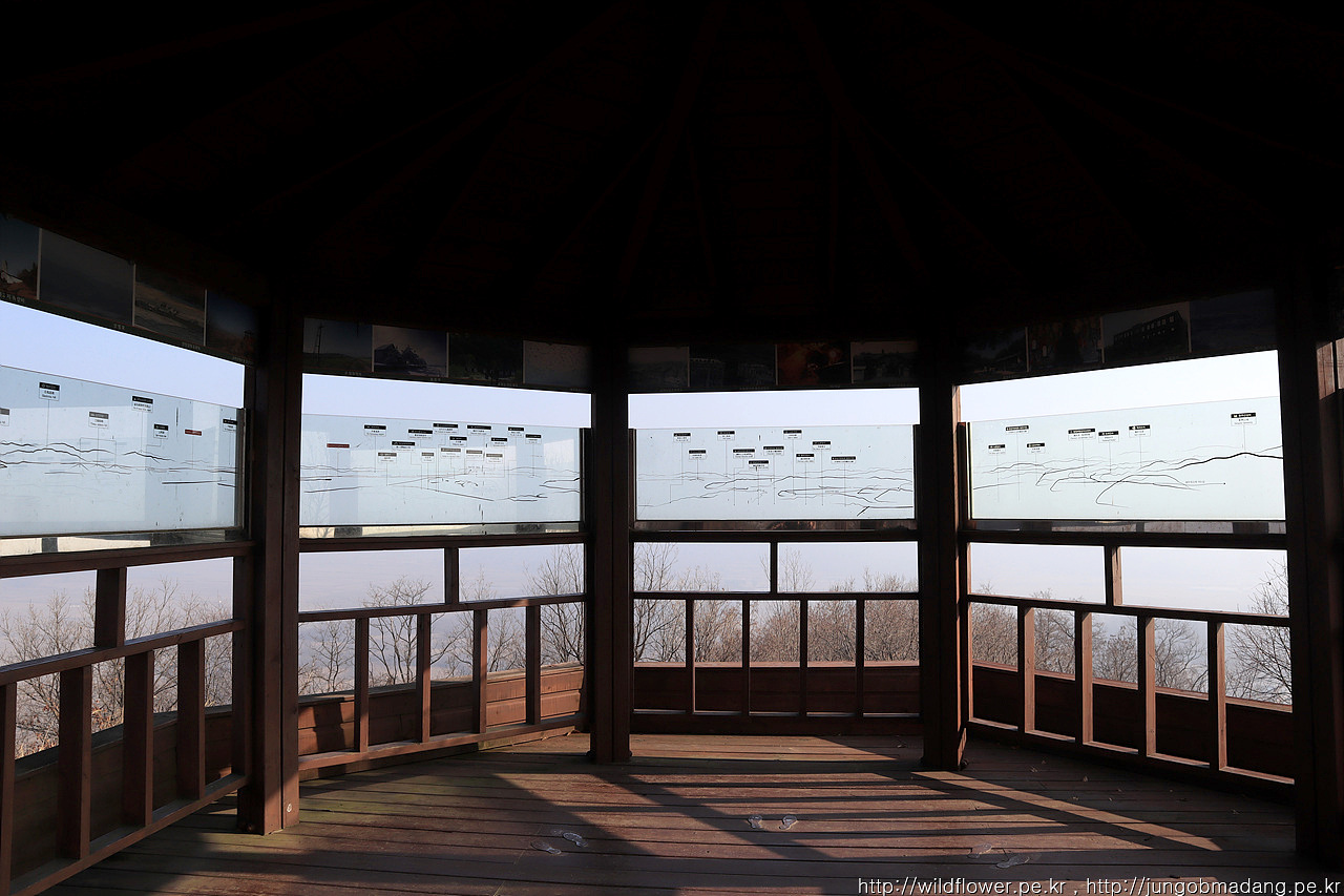 전망대에 오르니 투명하게 바라보는 곳의 지명을 적어 두었네요.