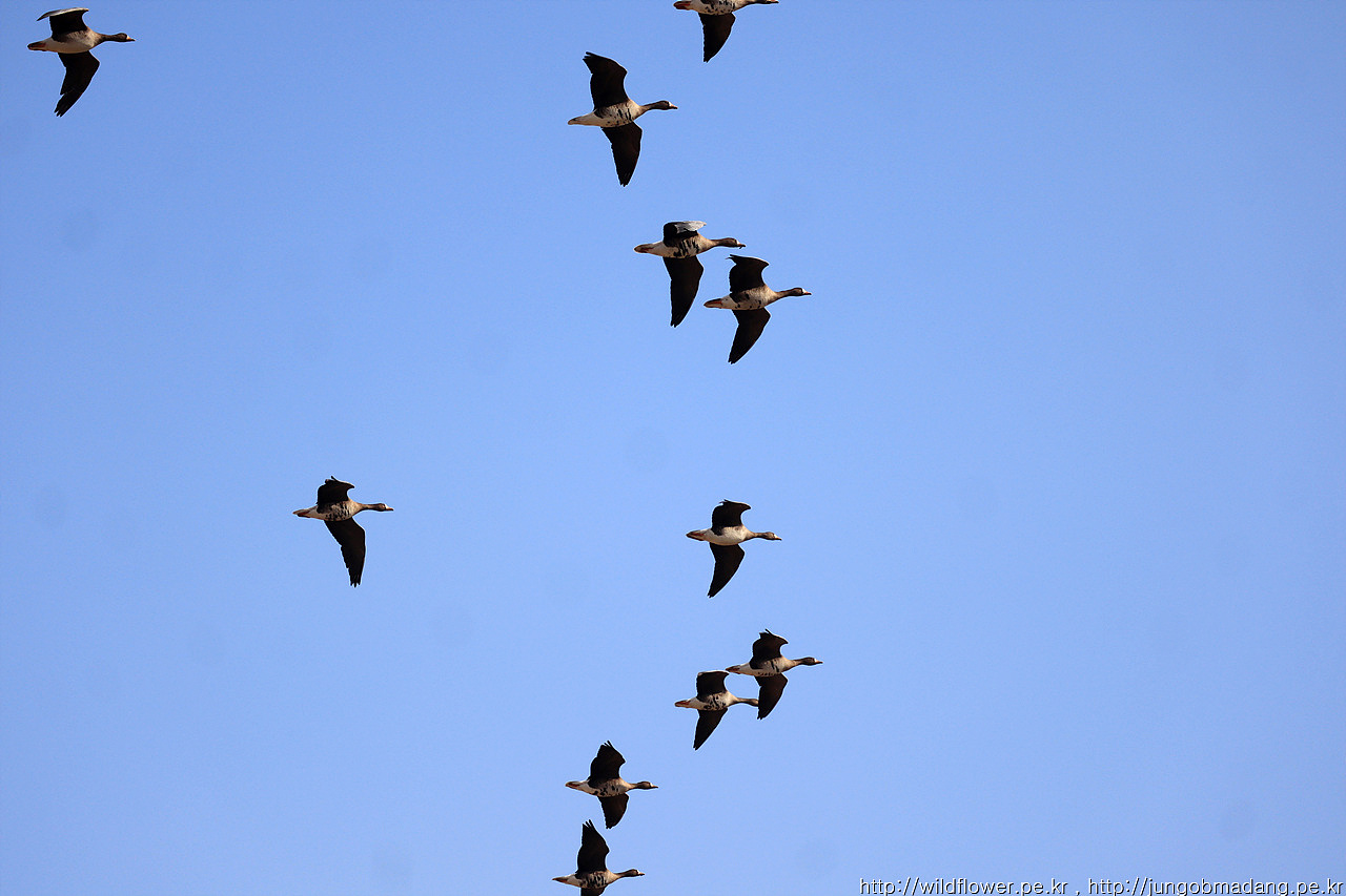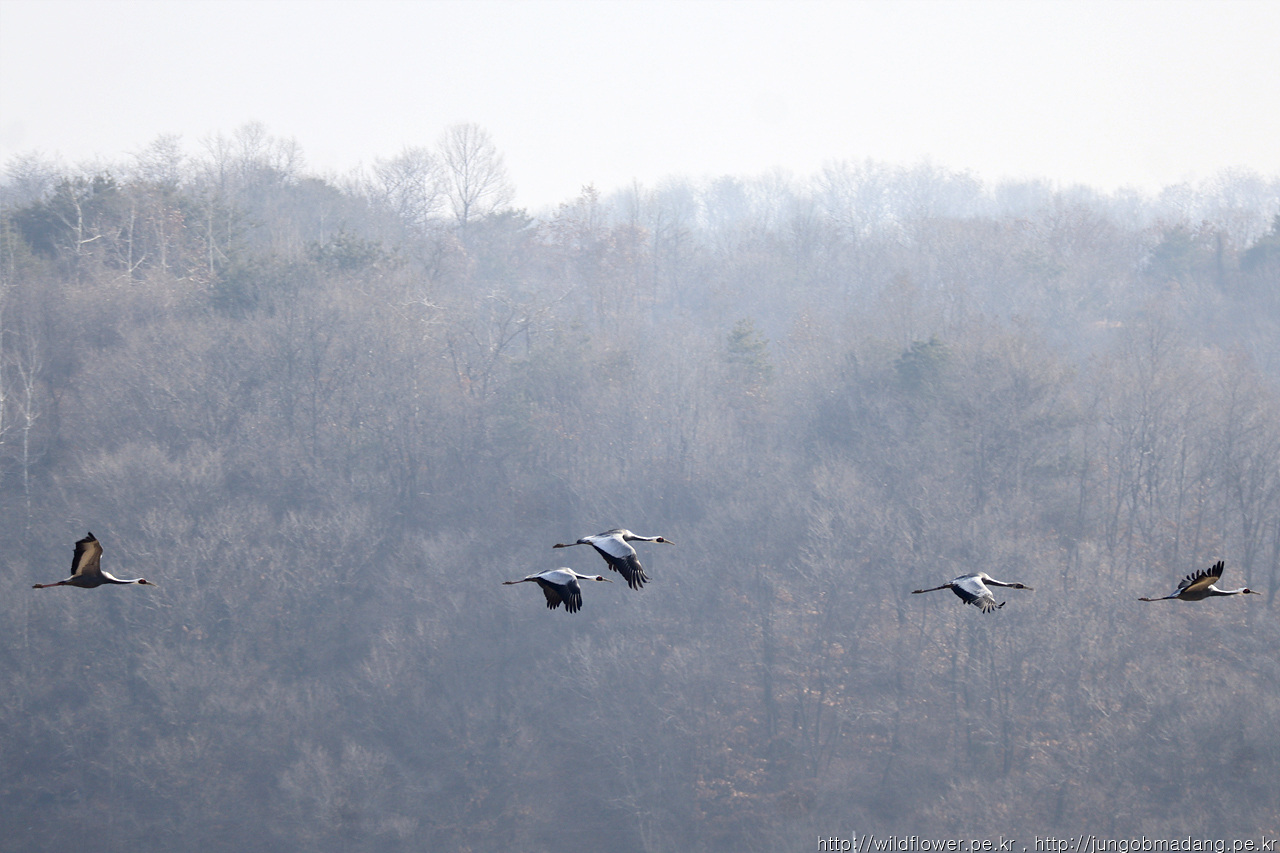 하늘 위로 멀리 흑두루미 세마리도 보입니다.
