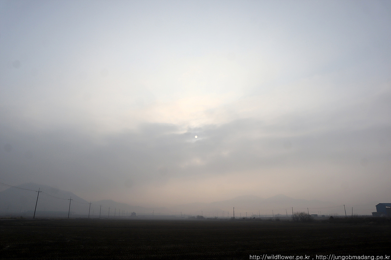 희뿌연 안개에 갇힌 햇님도 바라 보고
