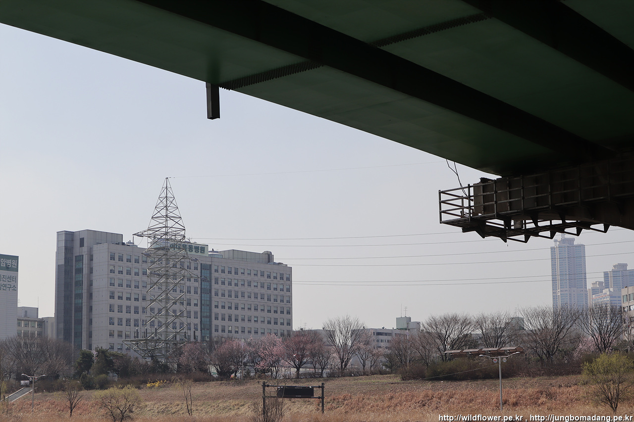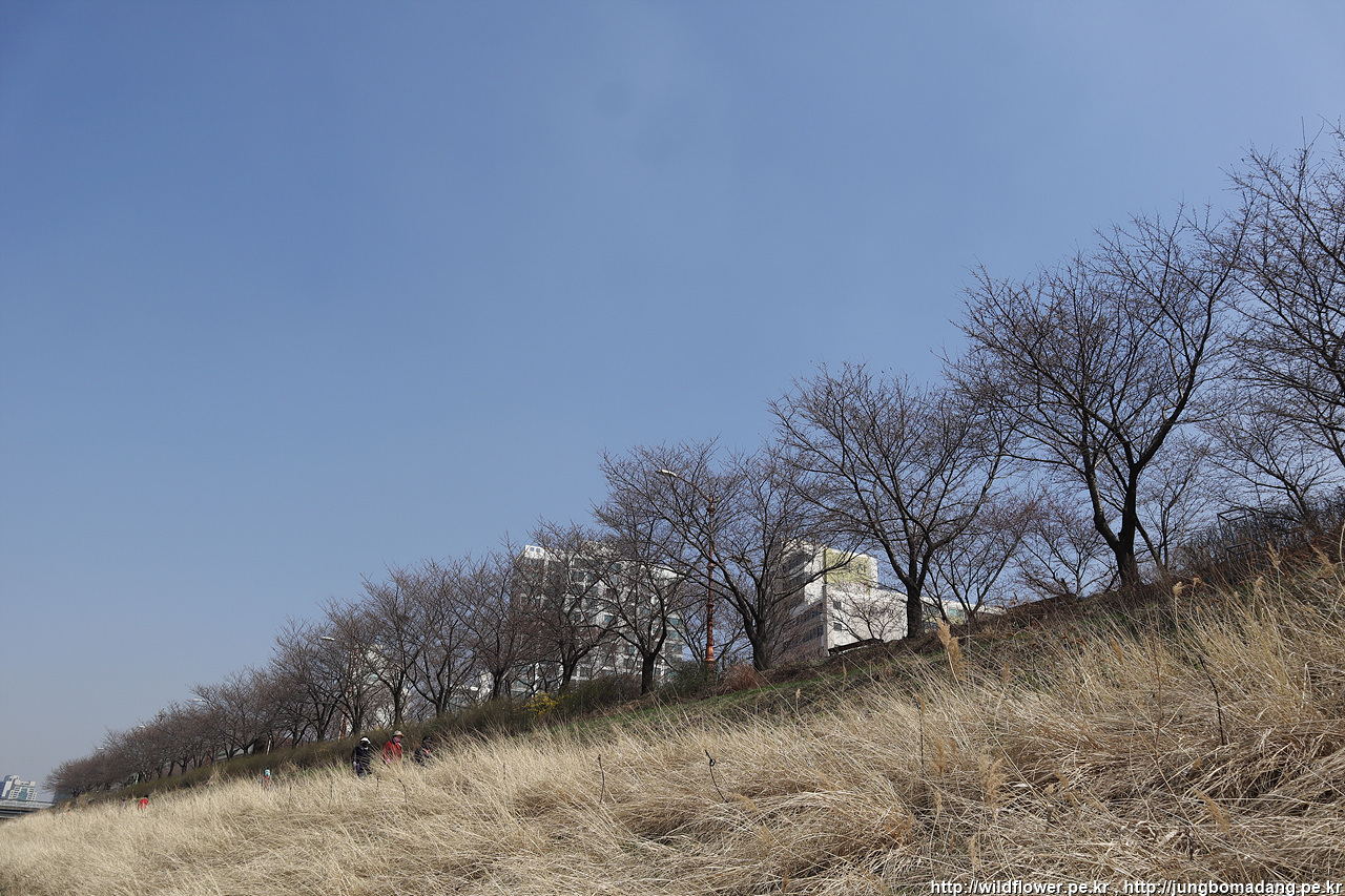 도로옆에는 개화된 것이 안보이는 데, 한강고수부지쪽으로 조금 내려오니 개화된 벚나무가 보입니다.