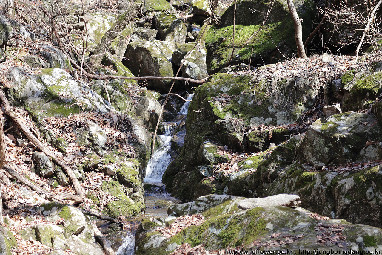 이끼를 잔뜩 머금은 계곡의 바위들도 보입니다.