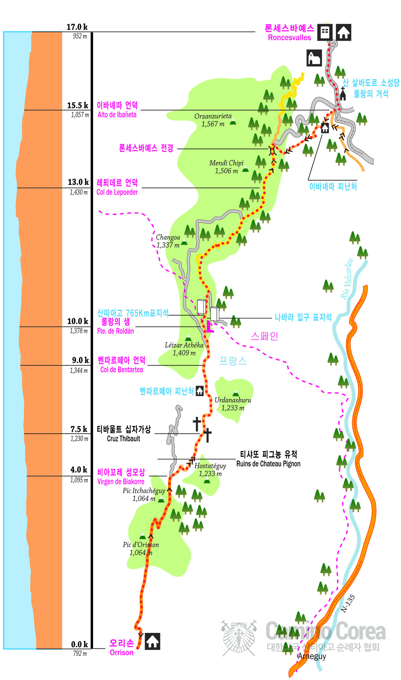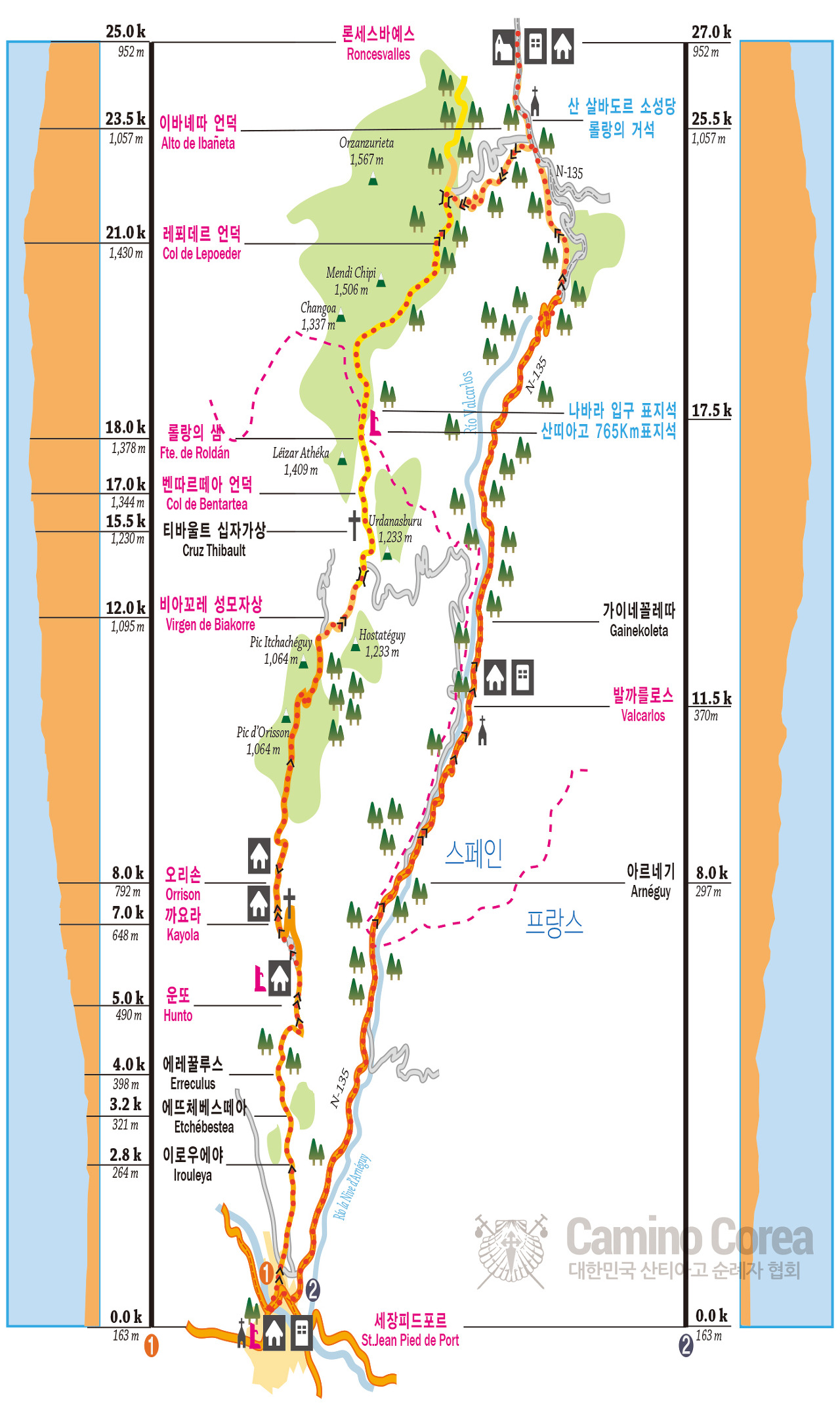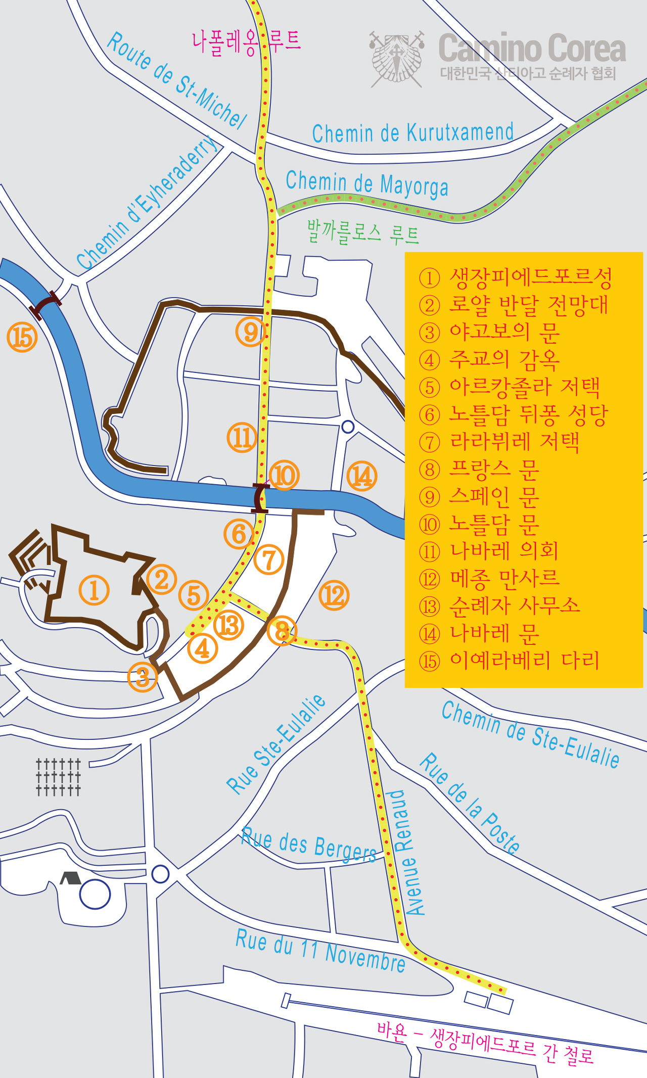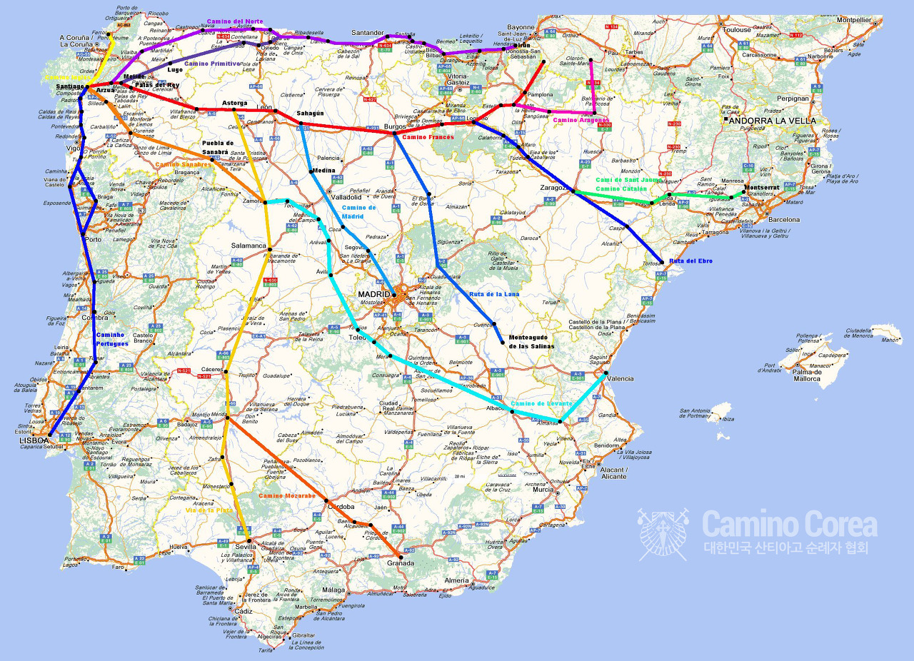 * 산티아고 순례길 전체 지도와, 프랑스길 구간지도는 http://caminocorea.org/ 에서 담아 왔습니다.