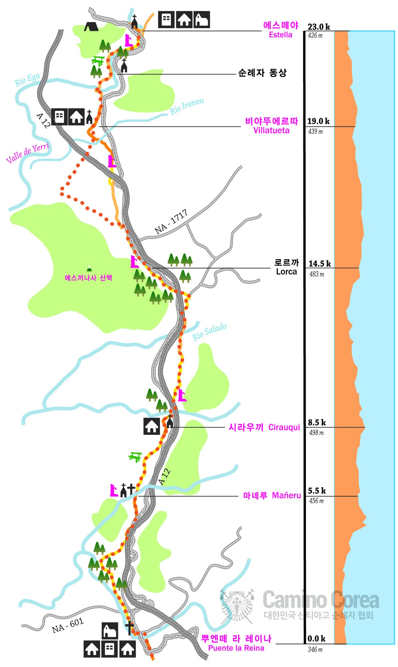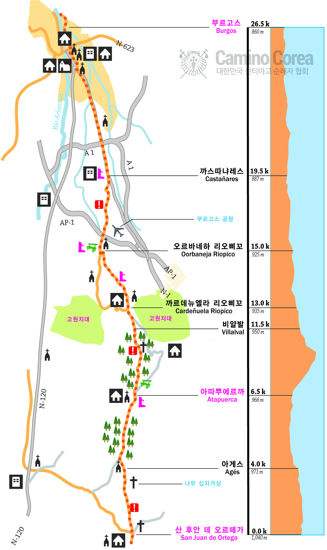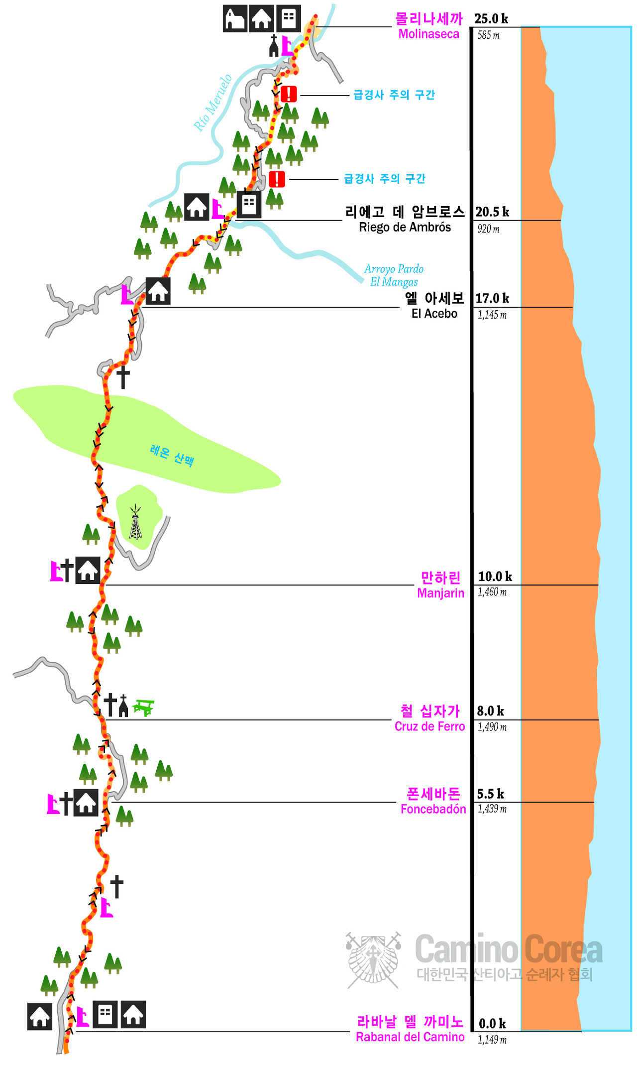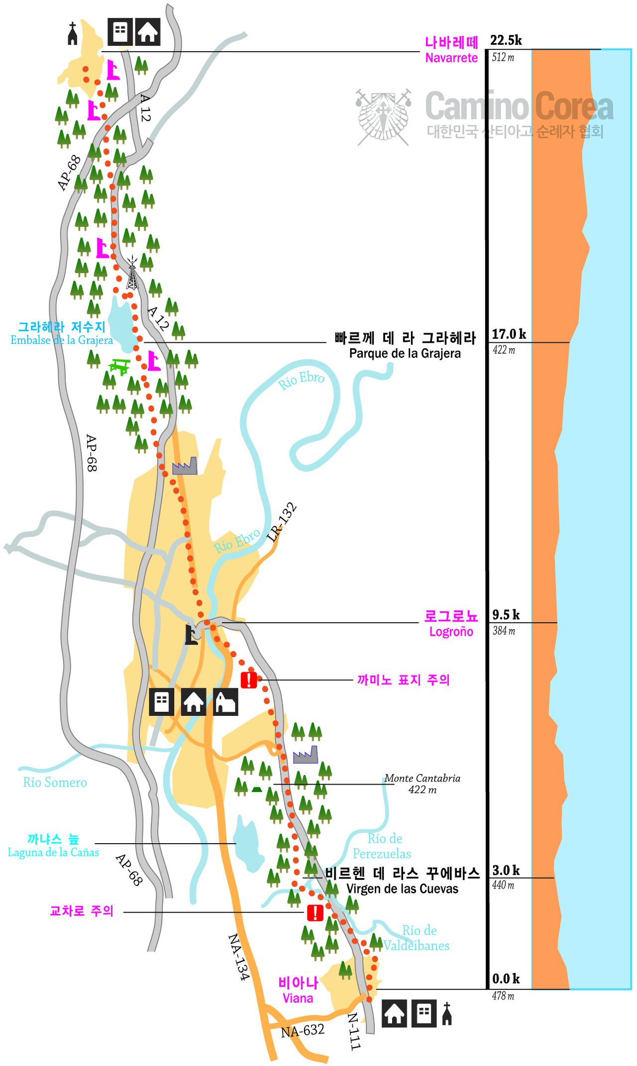 * 산티아고 순례길 전체 지도와, 프랑스길 구간지도는 http://caminocorea.org/ 에서 담아 왔습니다.