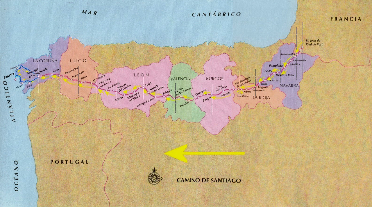 * 산티아고 순례길 전체 지도 - 붉은색이 프랑스길