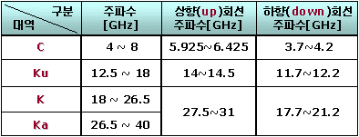 4~8GHz(C밴드) 12.5GHz~18GHz(Ku밴드)
