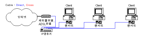 - IP공유기 - 컴퓨터 : 다이렉트 케이블