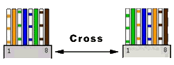 수신과 송신 부분을 꼬아 줌으로써 한쪽 단의 송신 신호는 다른 단의 수신 신호로 또한 한쪽 단의 수신 신호는 다른 단의 송신 신호로 되어 즉 한쪽 컴퓨터에서 보내면(송신) 다른쪽에서 받게(수신) 되는 구조로서 이때는 이 케이블 만으로 두대의 컴퓨터로 연결을 할 수가 있게 된다. 사용 용도는 컴퓨터와 컴퓨터의 연결 혹은 UPLINK ,MDI-X, daisychain가 없는 허브간의 연결에 사용된다.