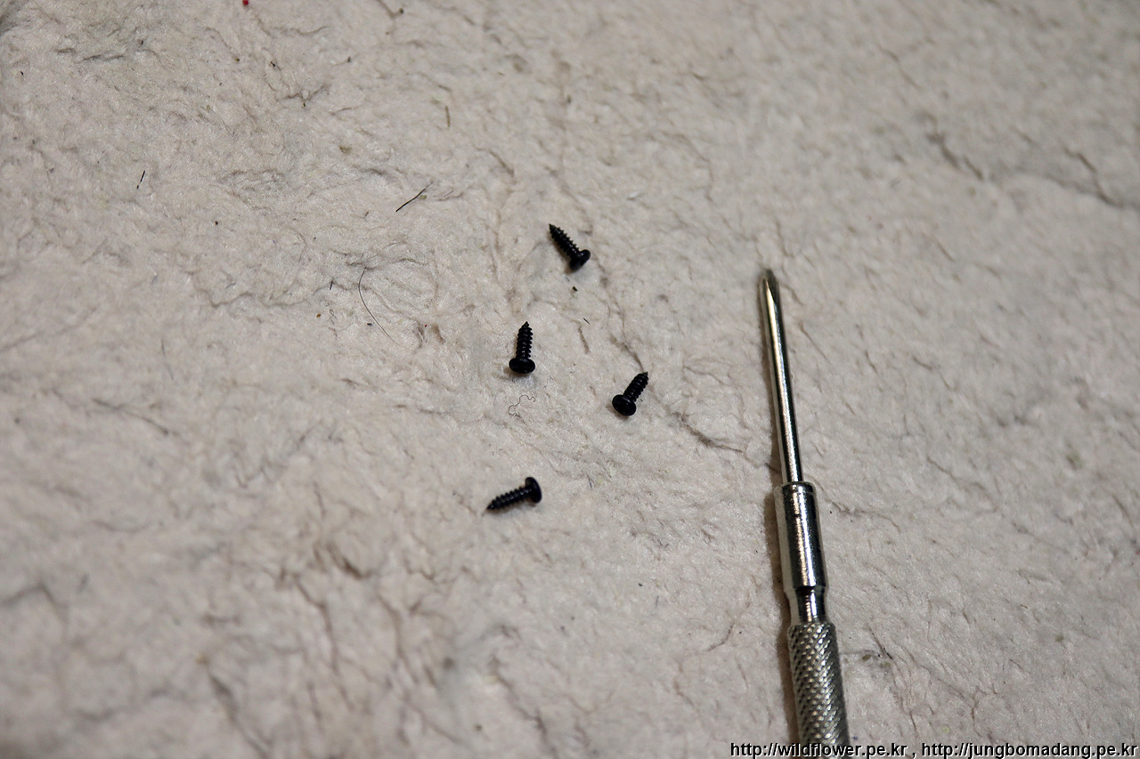 근데 풀어야 하는 나사가 4개네요. 그리고 꽤 작아서 시계드라이버 십자 제일 작은 것을 이용해야 하고, 일부 나사는 잘 풀리지 않아 힘이 꽤 들어갑니다.