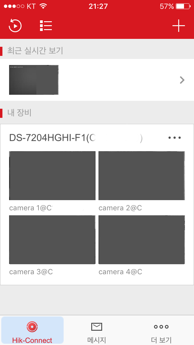 요래 아이폰으로 Hik-Connect 어플을 다운받아 세팅을 하면