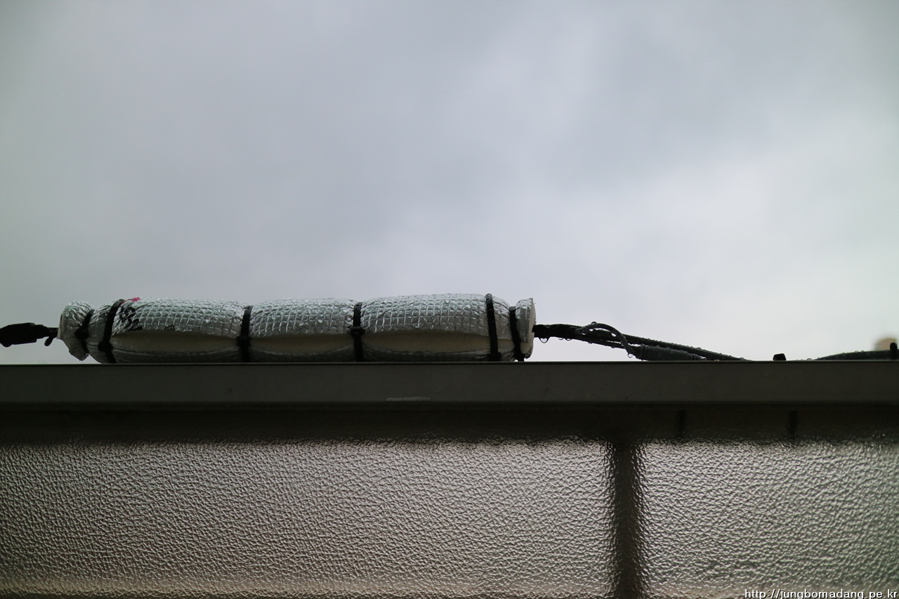 요래 천정 방수작업하고 남은 단열재로 씌워서 마무는 케이블 타이로 합니다.