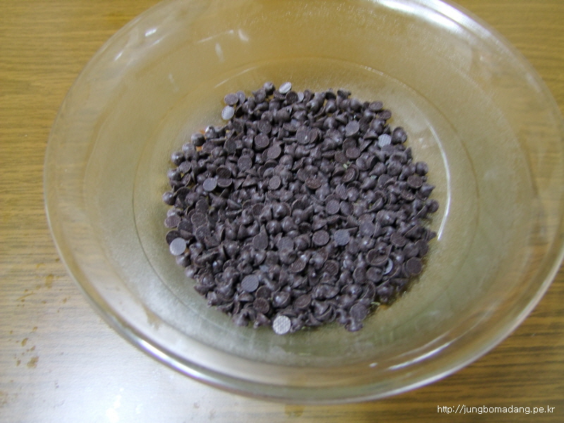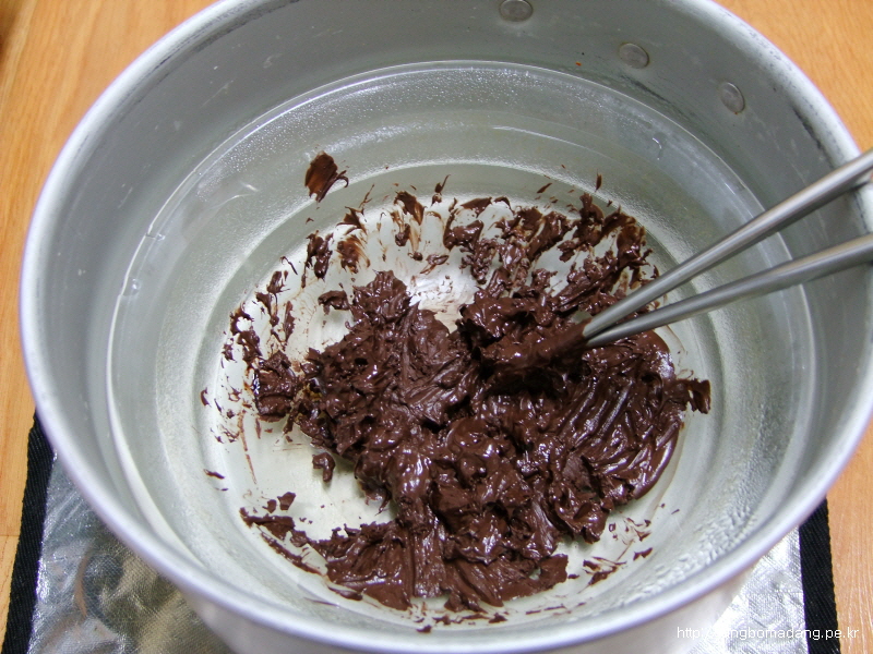 분채를 만들었으면 다음엔 초컬릿을 중탕해야합니다. 이렇게 내열용기에 넣고