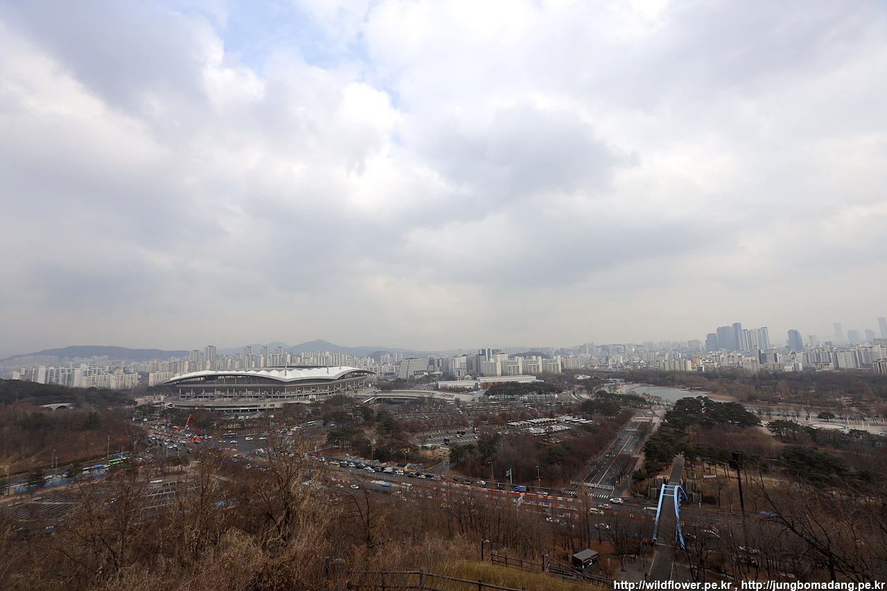 열심히 계단을 오르다가 뒤를 바라보니 좌측에 월드컵경기장이 눈에 들어 옵니다.