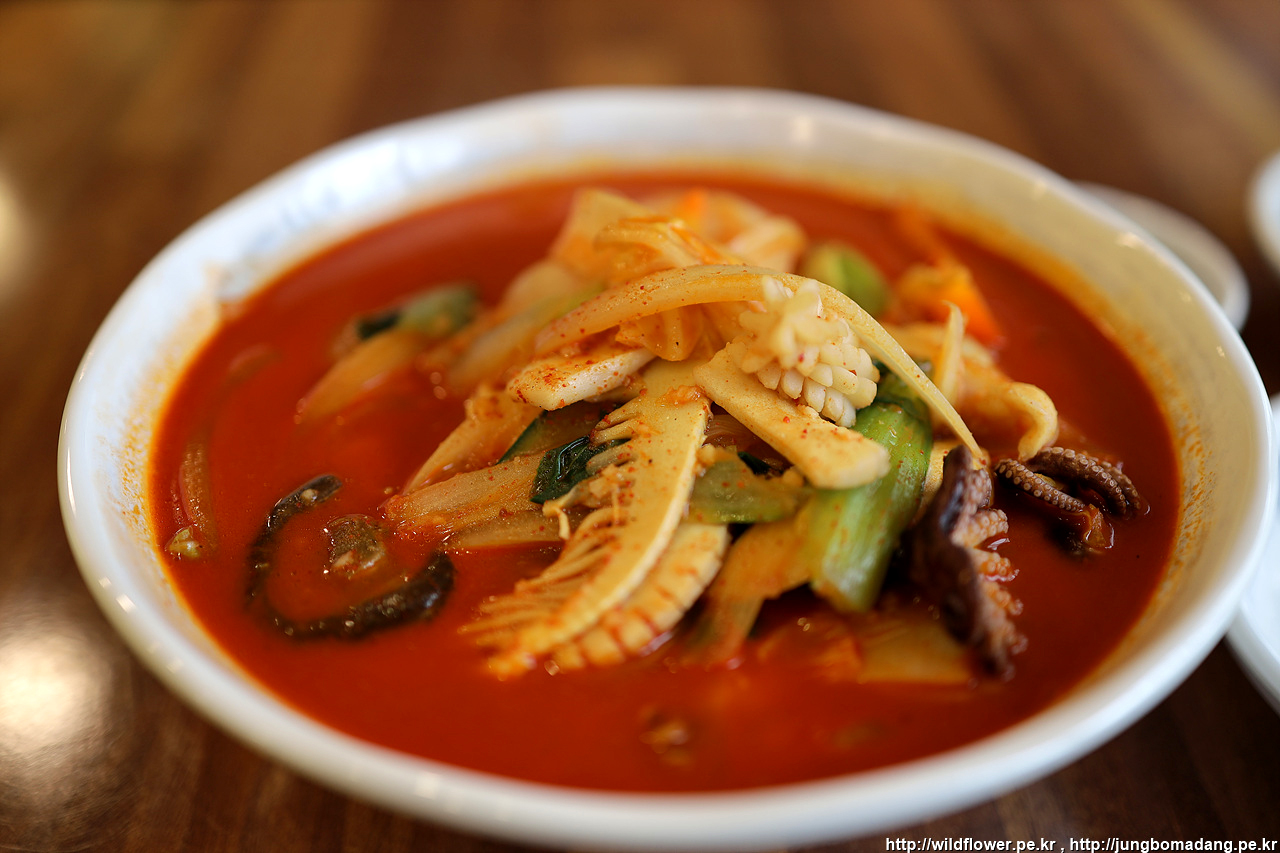 소갈비 어딨지? 하고 수색에 돌입하고 나서 찾은 세덩어리의 소갈비. 국물 한입 딱 뜨니 제일 와닫는 느낌은 좀 짜다. 참고로 본인이 음식을 슴슴하게 먹는 걸 선호하다 보니 이것은 지극히 제 주관적인 느낌임을 알려 드립니다. 그리고 가격에 걸맞게 내용물(쭈꾸미, 갑오징어?, 오징어, 죽순, 청경채, 파프리카, 피망, 호박, 양송이버섯, 양파, 배추 등등)도 그득