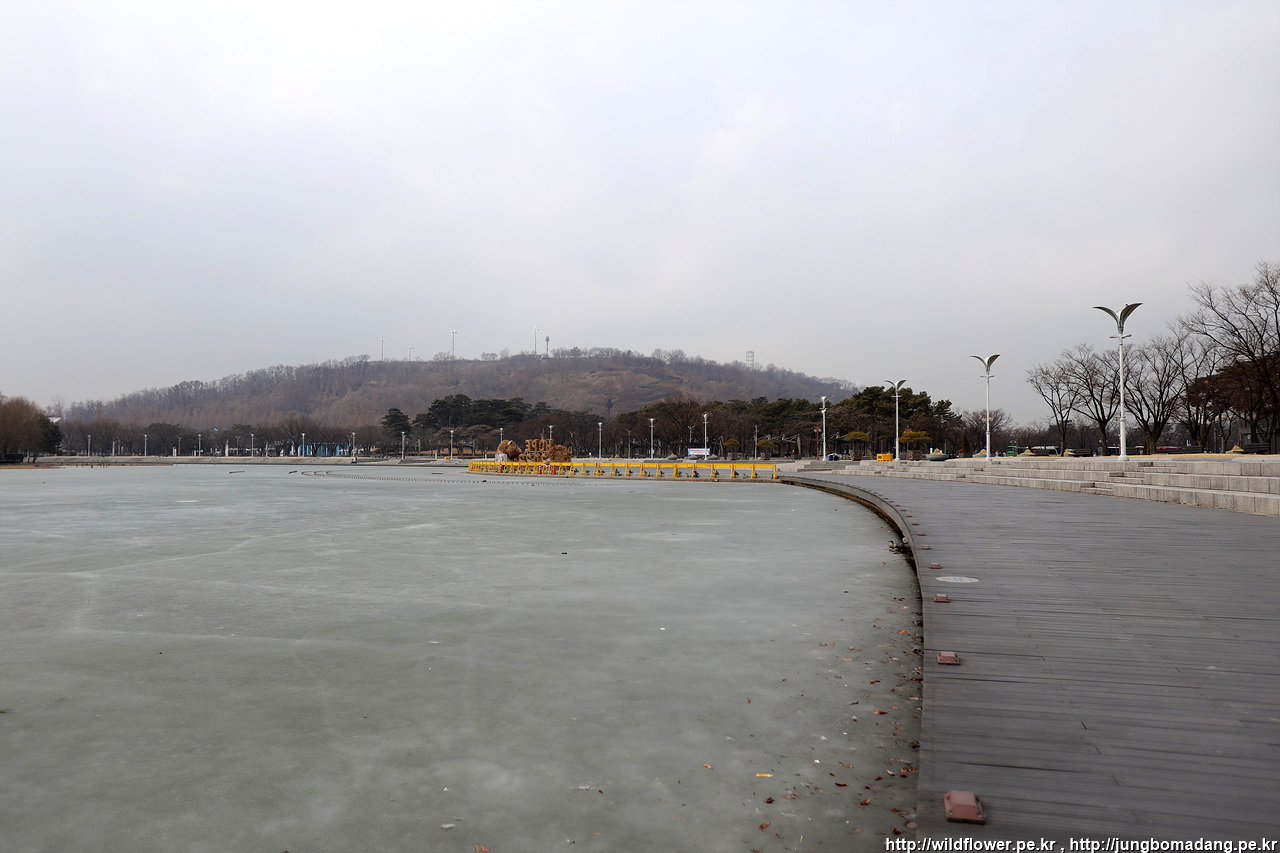 난지연못 - 얼핏 꽝꽝 언 느낌이지만, 발로 살짝 건드려보니 꼭 그렇지도 않은 것 같습니다. 안전을 위해 출입은 삼가합니다.