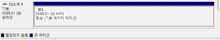 - 6TB HDD 1개(E:) CHKDSK 명령으로 RAW 파티션 복구 시도.