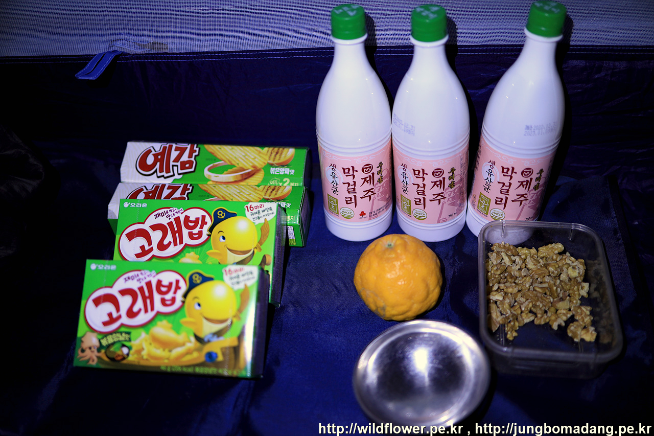 집에서 챙겨온 오미자주 200ml와 함께 조금 전 구매한 한라봉을 먹습니다.